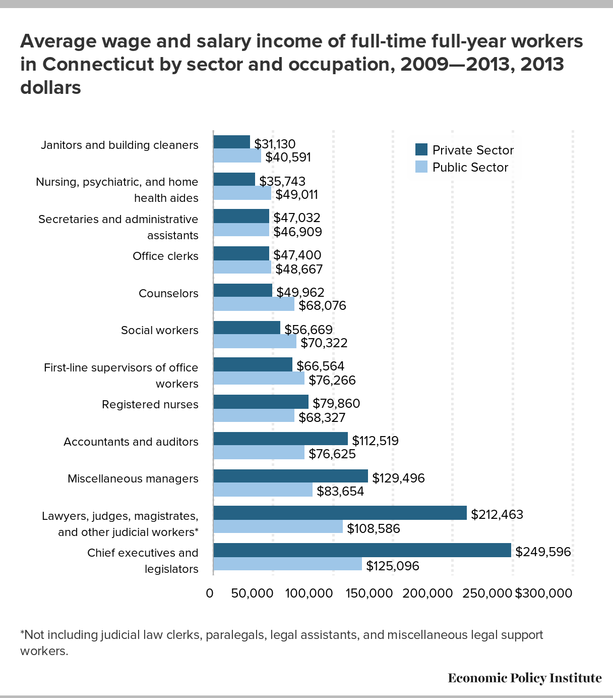 Average wage and salary income of full-time full-year workers in Connecticut by sector and occupation, 2009—2013, 2013 dollars
