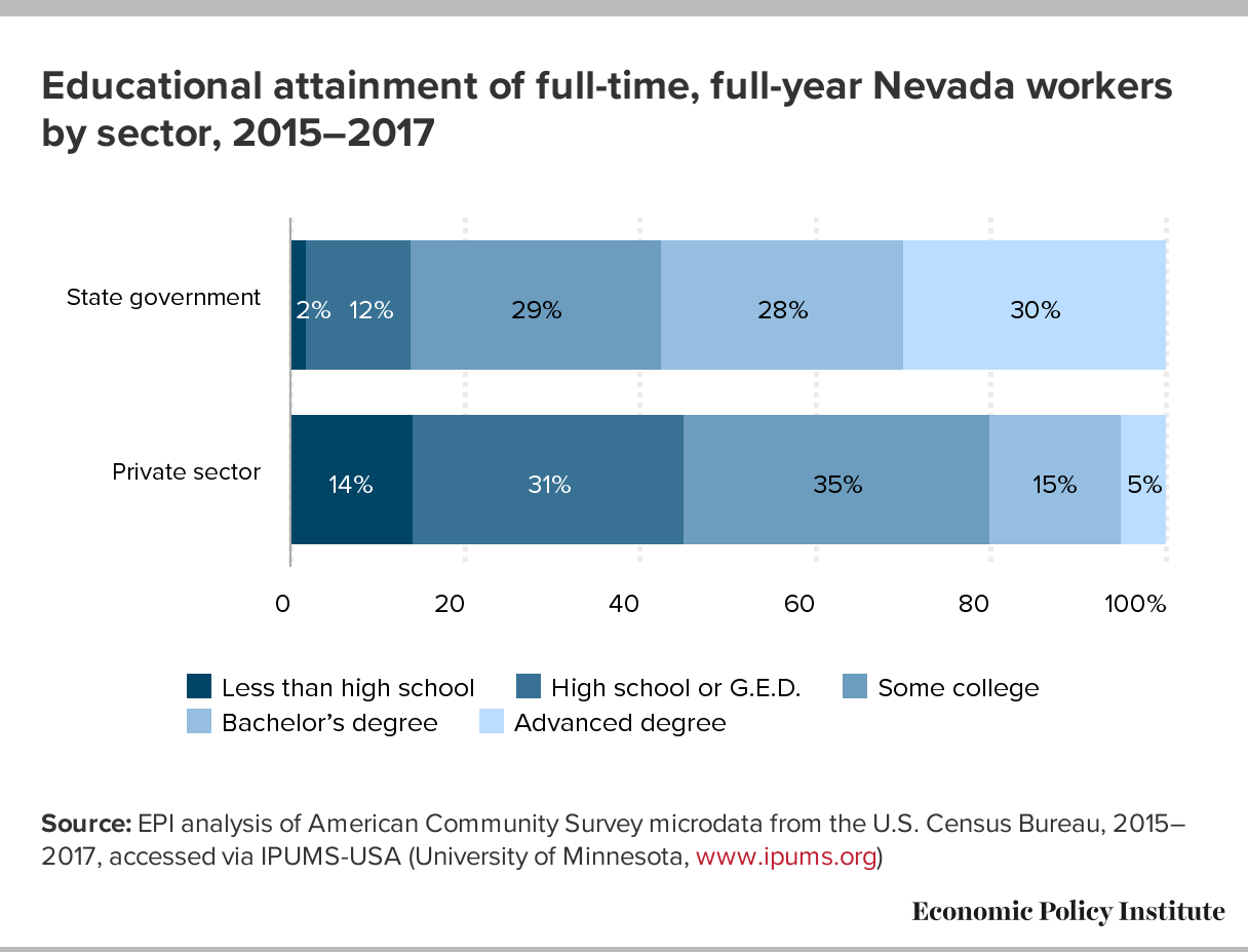 Educational attainment of full-time, full-year Nevada workers by sector, 2015–2017
