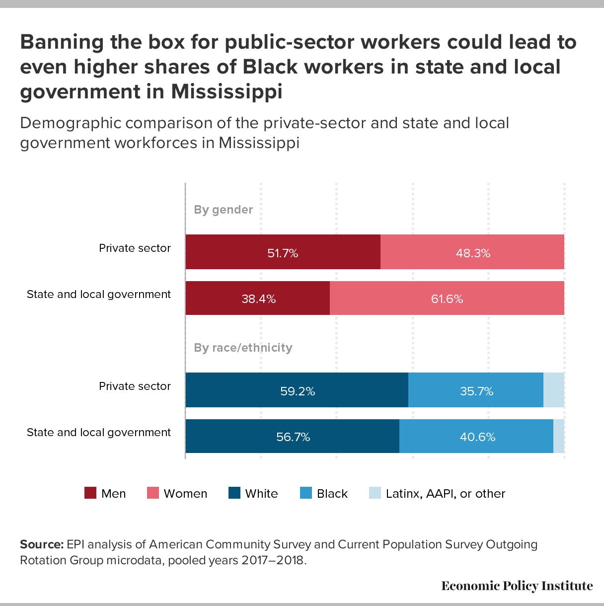 Banning the box for public-sector workers could lead to even higher shares of Black workers in state and local government in Mississippi: Demographic comparison of the private-sector and state and local government workforces in Mississippi