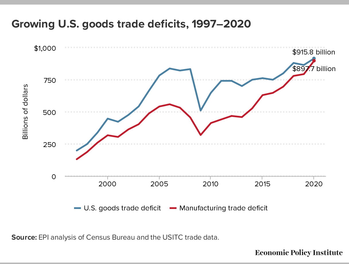 | U.S. goods trade deficit | Manufacturing trade deficit | |