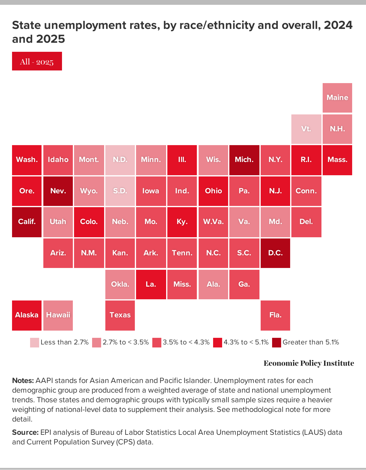 State unemployment rates, by race/ethnicity and overall, 2024 and 2025