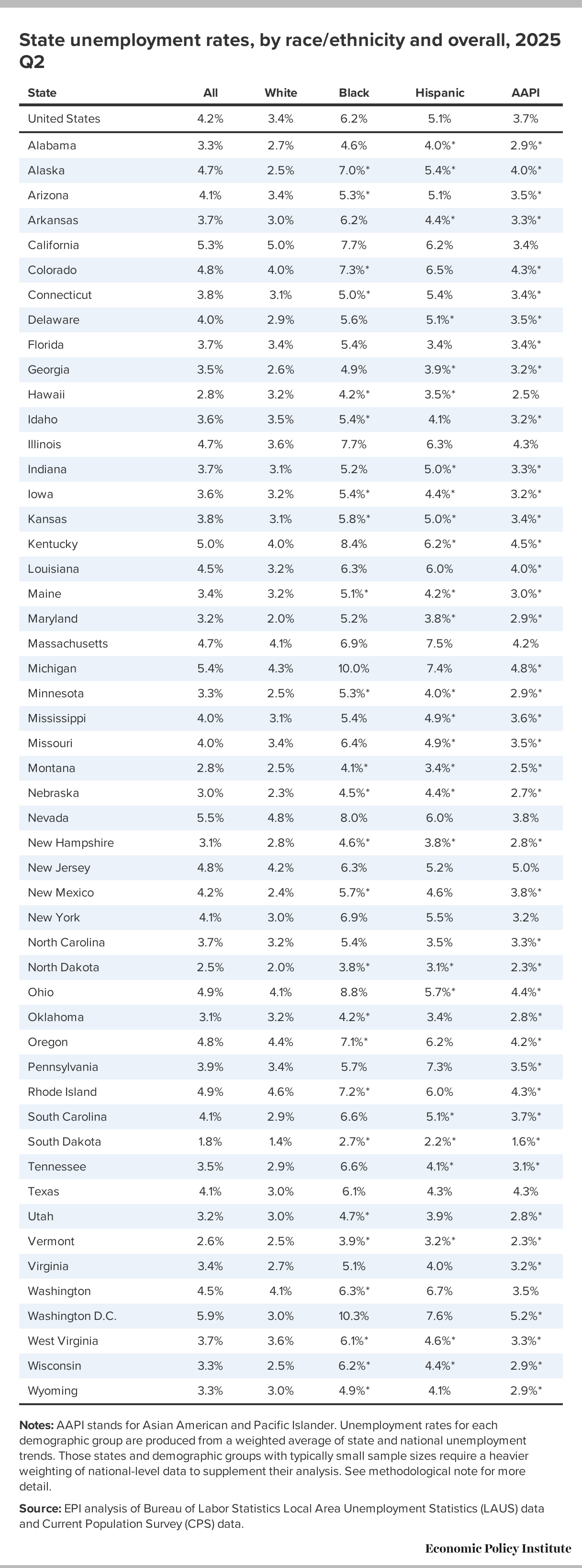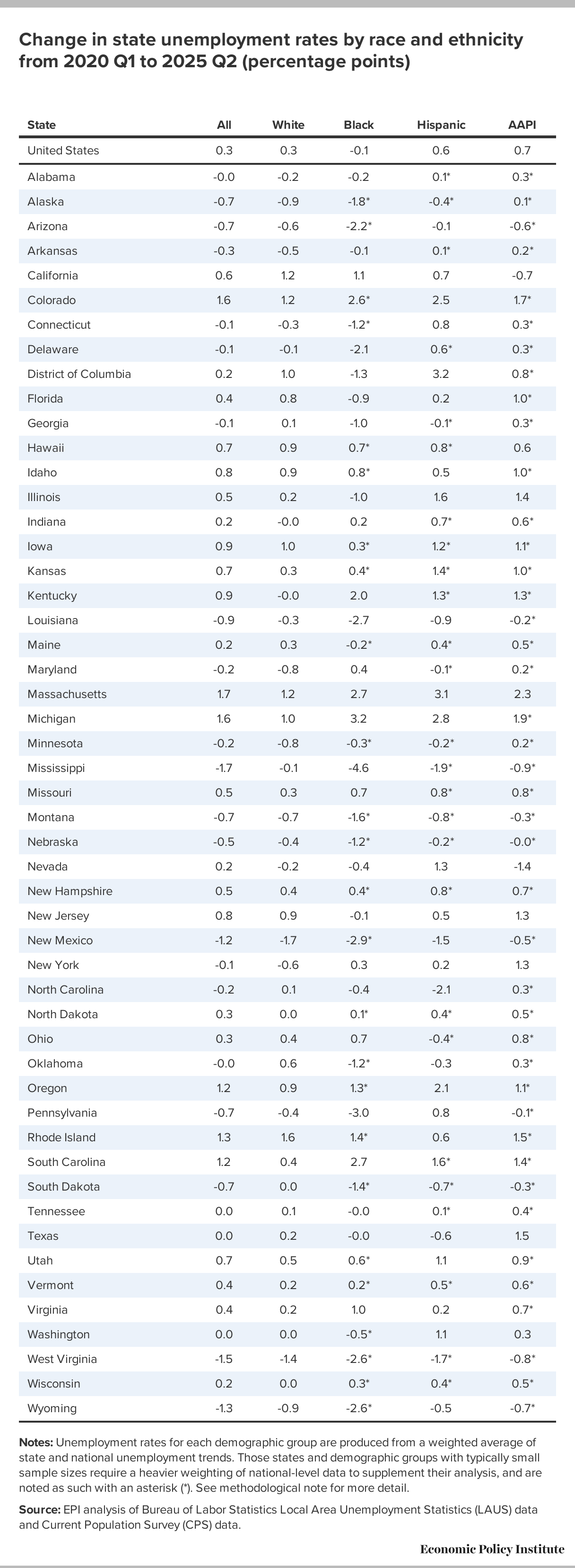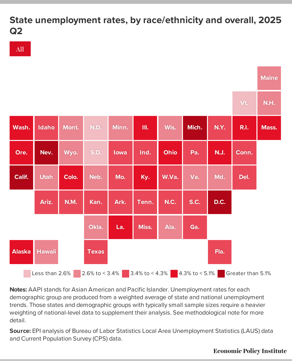 State unemployment rates, by race/ethnicity and overall, 2025 Q2