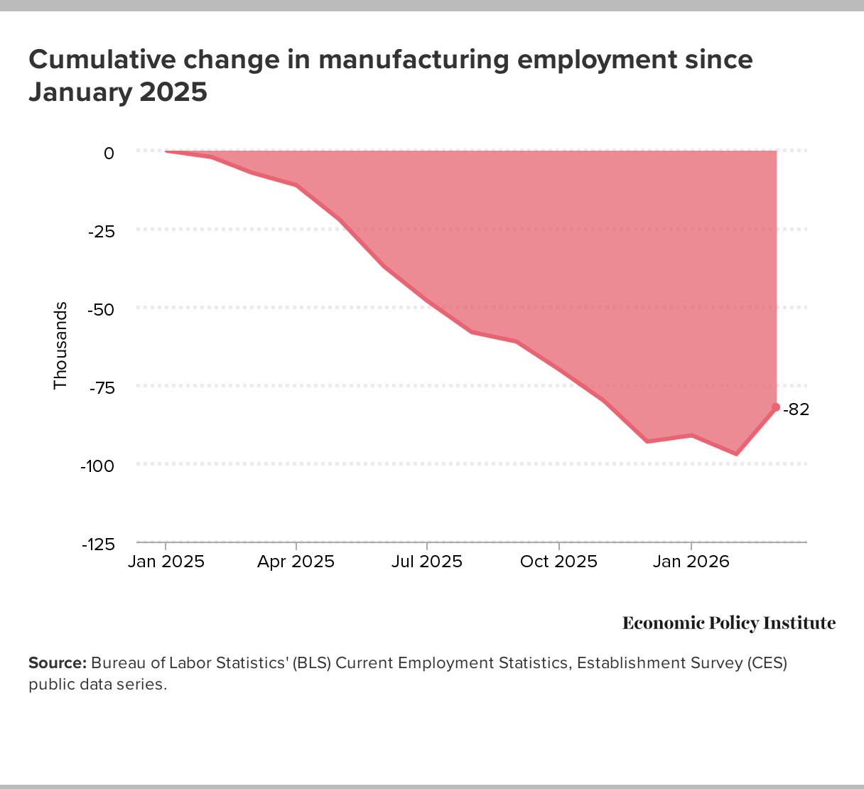 Cumulative change in manufacturing employment since January 2025