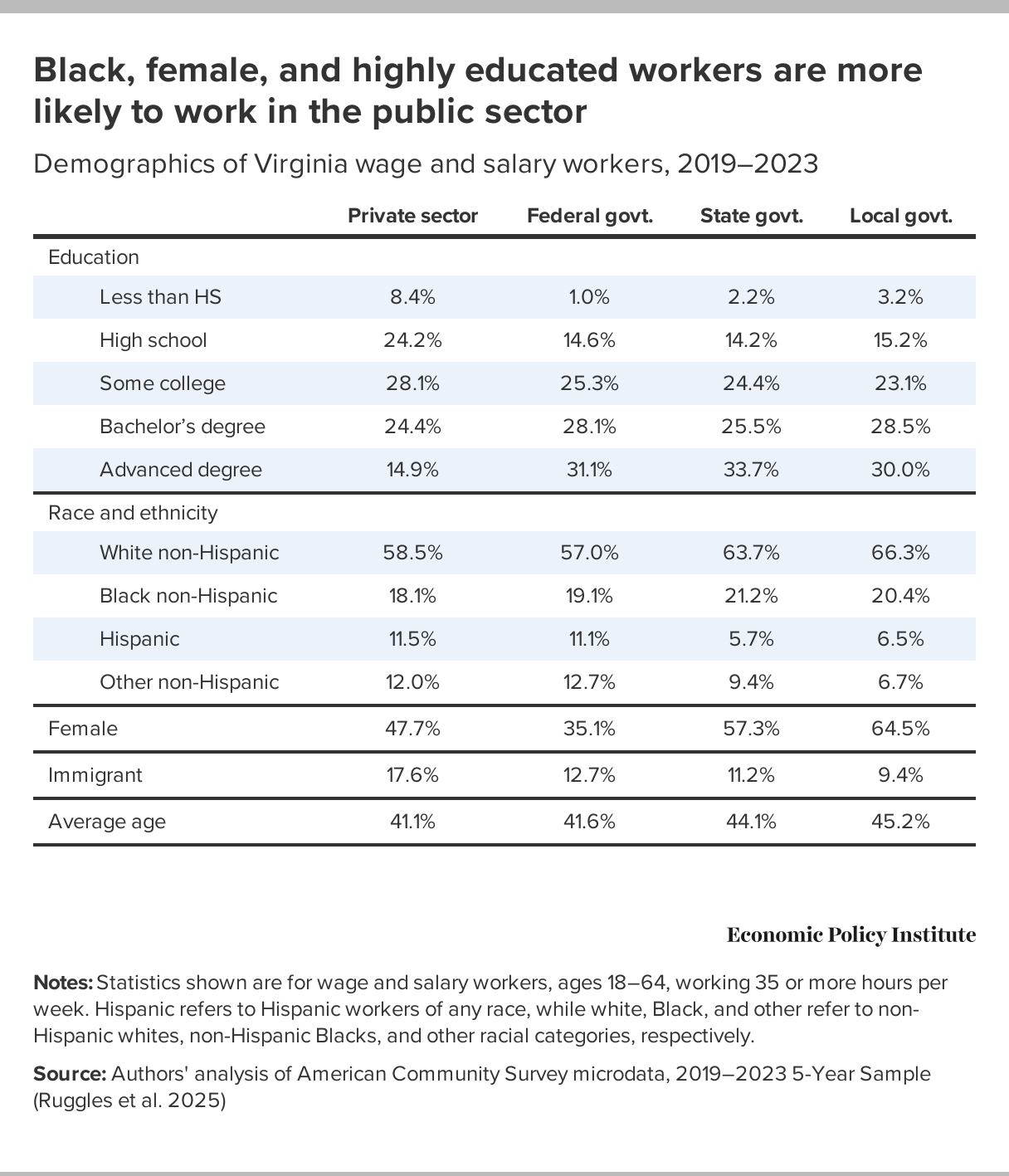 Black, female, and highly educated workers are more likely to work in the public sector: Demographics of Virginia wage and salary workers, 2019–2023