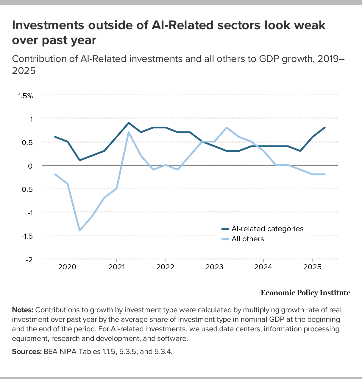 Bivens, Josh. Forthcoming. “How Are AI Investments Affecting the U.S. Economy?” Working Economics Blog (Economic Policy Institute).